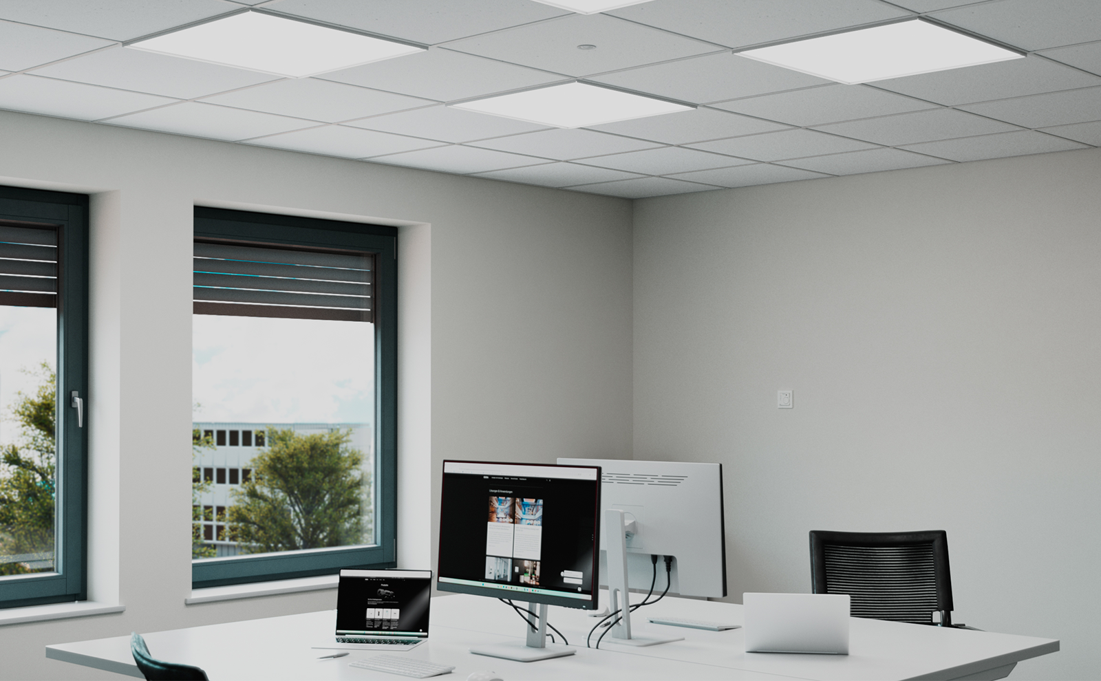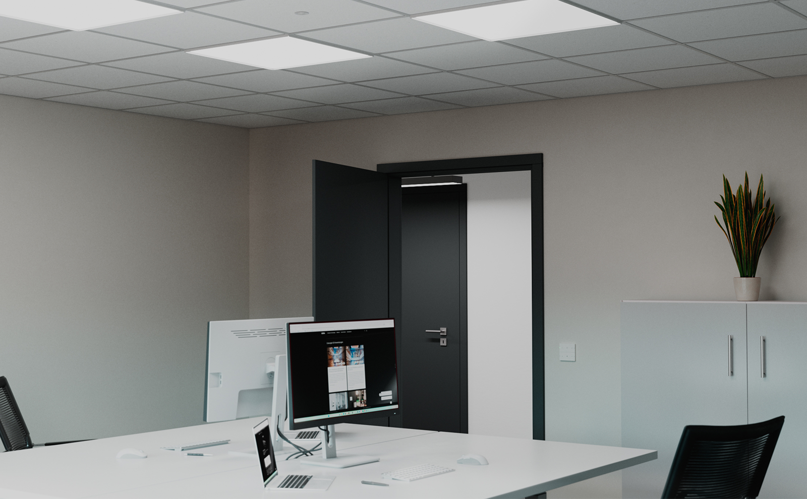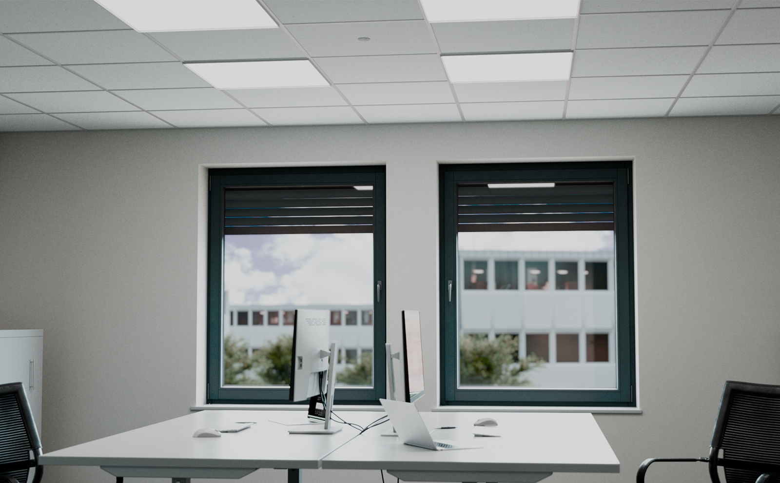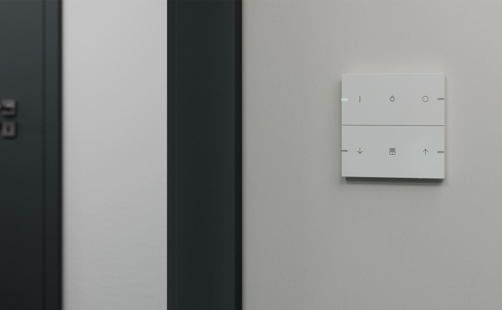 Blendfreies Arbeiten, ohne das Tageslicht ganz auszuschließen: Die Jalousie lässt sich ganz einfach über eine klar zugängliche Wippe am Tastsensor bedienen – ergonomisch und nutzerfreundlich.