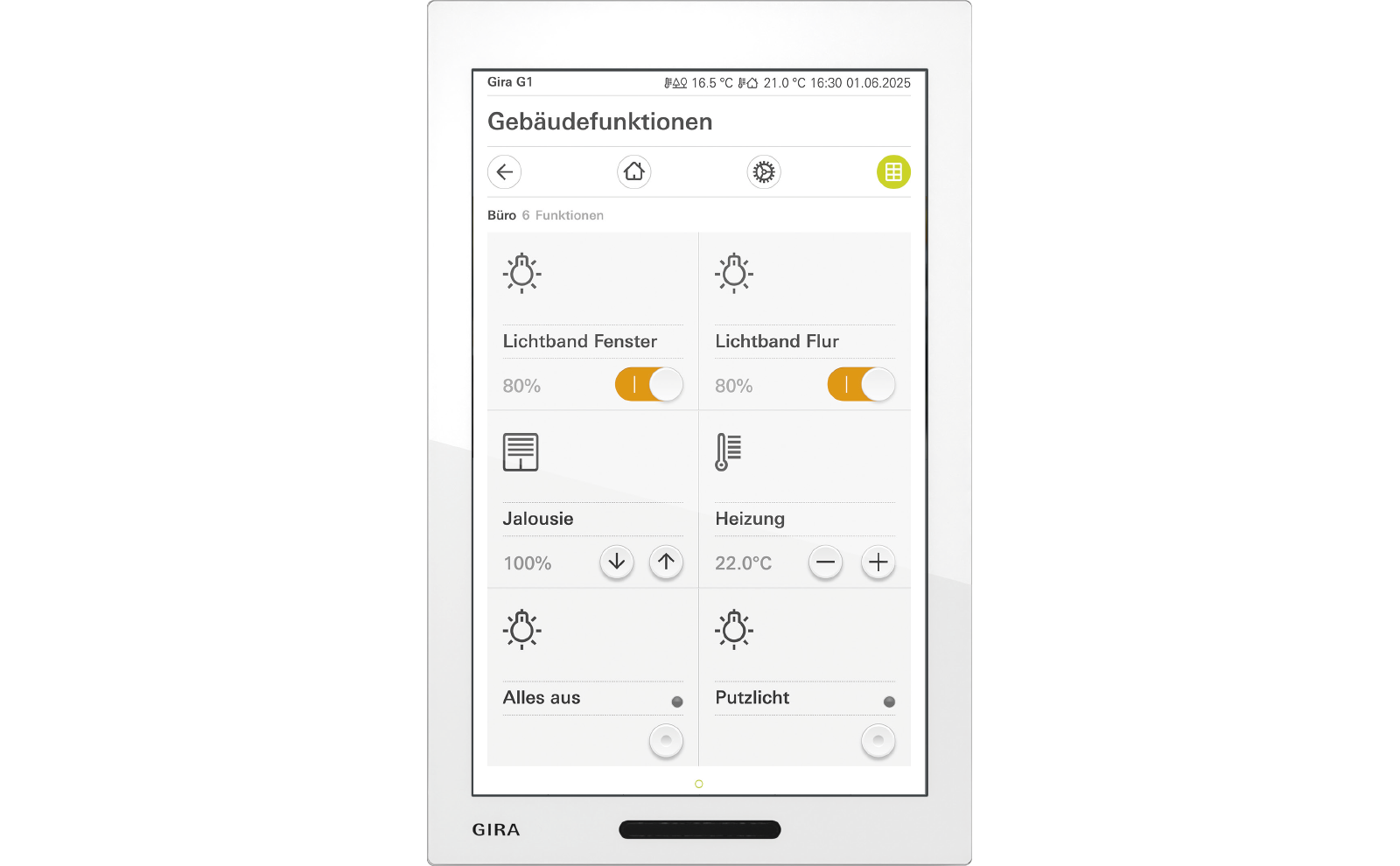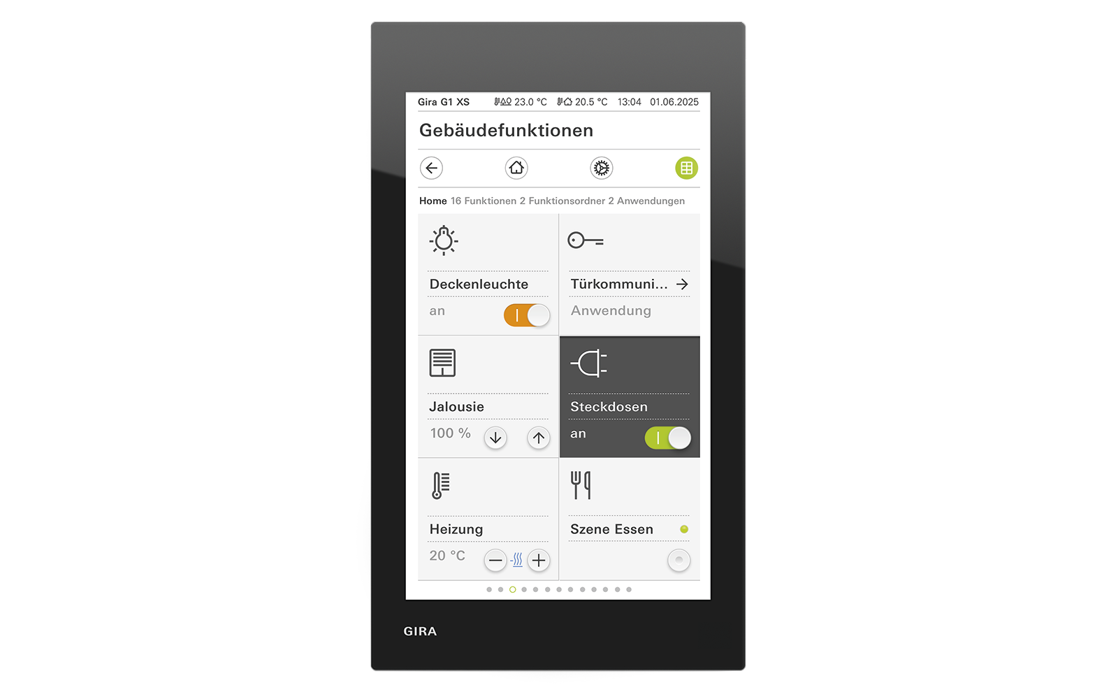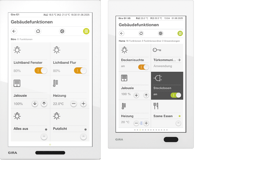 Der Gira G1 eignet sich ideal für Projekte mit hohem Anspruch an Visualisierung, Individualisierung und Multifunktionalität. Der Gira G1 XS empfiehlt sich für Neubauten oder Sanierungen mit Fokus auf schlanke, kosteneffiziente Smart-Home- Steuerung – ohne Kompromisse bei Design, Sicherheit oder Bedienkomfort.